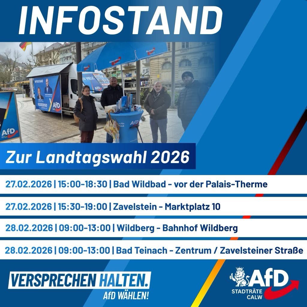 Im Rahmen des Wahlkampfs ist die AfD heute in Wildberg vor Ort.