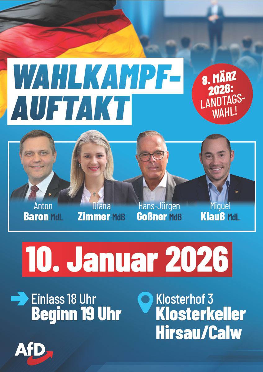 Am 16. Januar laden wir Sie herzlich ins Hotel Sonnenschein in Pfalzgrafenweiler ein, um gemeinsam in das Wahljahr zu starten.